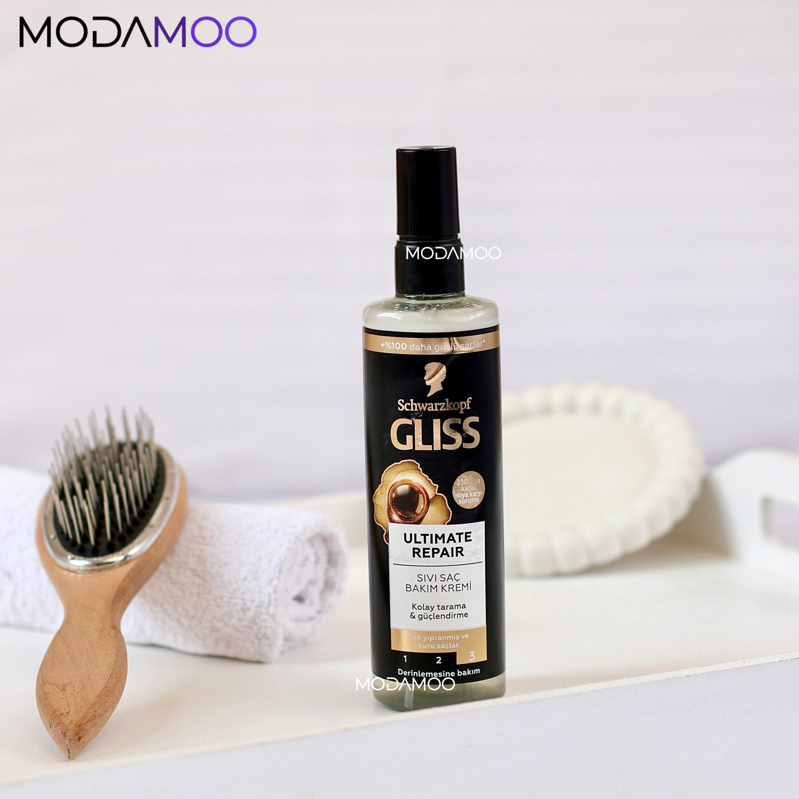 اسپری دوفاز مو گلیس مشکی مدل Ultimate Repair ترمیم کننده موهای آسیب دیدهGliss