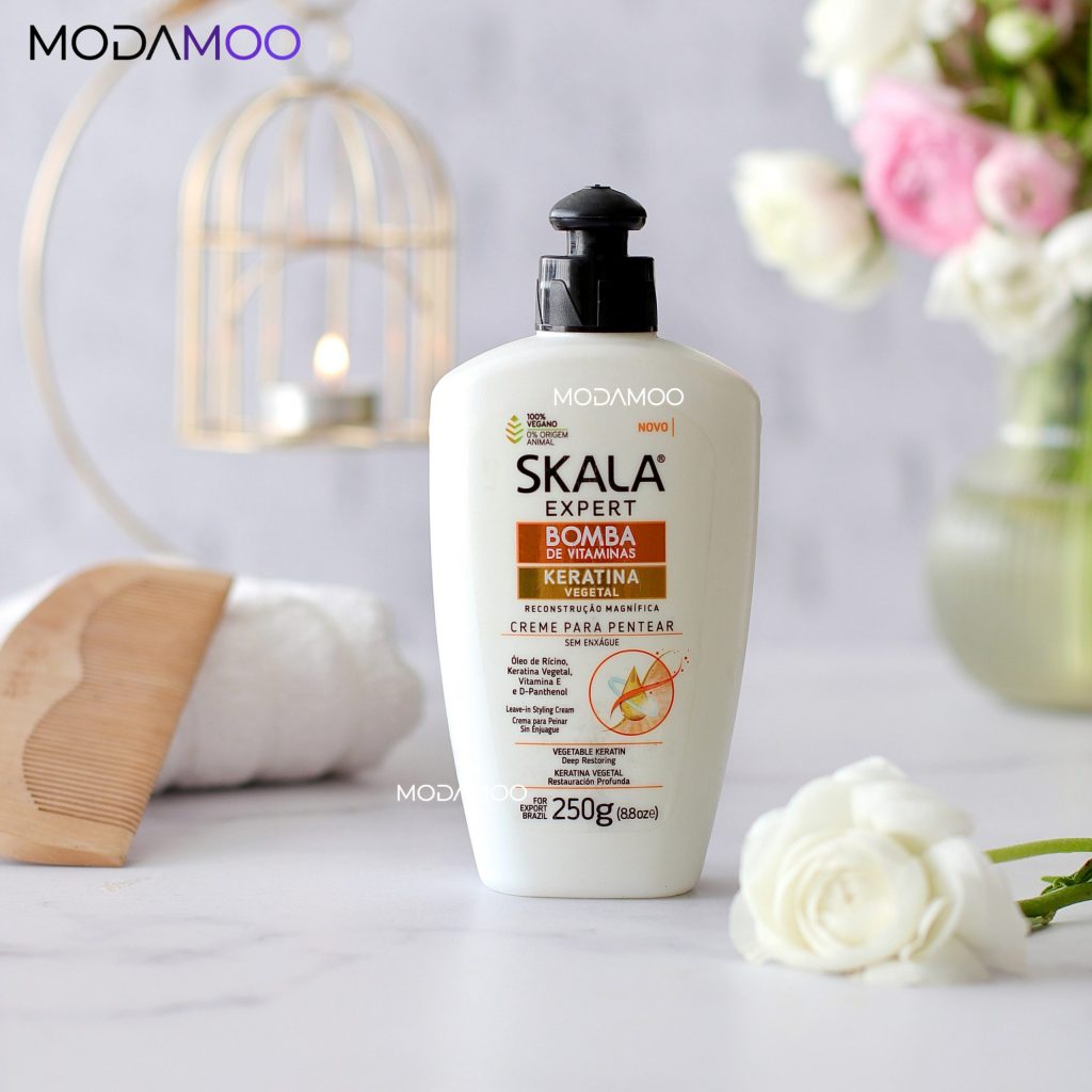 با استفاده از ترکیب بی نظیر روغن های گیاهی موجود در این کرم آبرسان بعد از حمام اسکالا ، موهای خود را تقویت نموده و از موهایی مقاوم و خوش حالت بهره مند گردید.این محصول برای افرادی که موهای شکننده و آسیب پذیر دارند مناسب می باشد. ویتامین E موجود در این محصول جهت آبرسانی به موها، پرو ویتامین B5 برای رشد مو و امگا ۳ به منظور رطوبت رسانی عمقی موها می باشد.